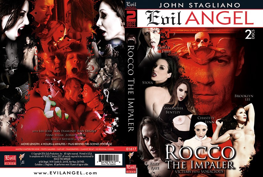 Rocco The Impaler Summary: Collaborating across their careers, director John Stagliano and porn icon Rocco Siffredi have contributed mightily to each other's Hall Of Fame acclamation. ''Rocco The Impaler'' compiles the fiercest action from the recent ''Voracious'' and ''Voracious Season Two'' projects, in which Rocco delivered hardcore fetish carnality motivated by John's cinematic vampire intrigue. As ferocious vampire clan enforcer Vlad, Rocco subjects redhead Brooklyn Lee to an interrogation face fuck. Finding a vampire hunter (British beauty Samantha Bentley) trussed up in chains, Rocco harshly manhandles her with biting, slapping and spanking; Samantha gets all holes reamed. Fair-skinned Stoya and Rocco delight in fetish explorations, power fucking, rim jobs and breath control by cock, foot and tongue. Bad girl Chastity Lynn escapes a convent-like halfway house for a spit-slick blow job and a choking fuck under a full moon. Rocco sodomizes her to gaping and she sucks cock ass-to-mouth. Three superhuman encounters of throat fucking, asshole mastery and messy spit play climax this epic collection: Skin Diamond and Roxy Raye blaspheme with glowing crucifix dildos - Roxy's flexible rectum takes two at once! Rocco pushes Roxy, Ashley Fires and corrupted Mother Superior Rain DeGrey to their submissive limits. But lithe Lea Lexis gets the ultimate suck-off.